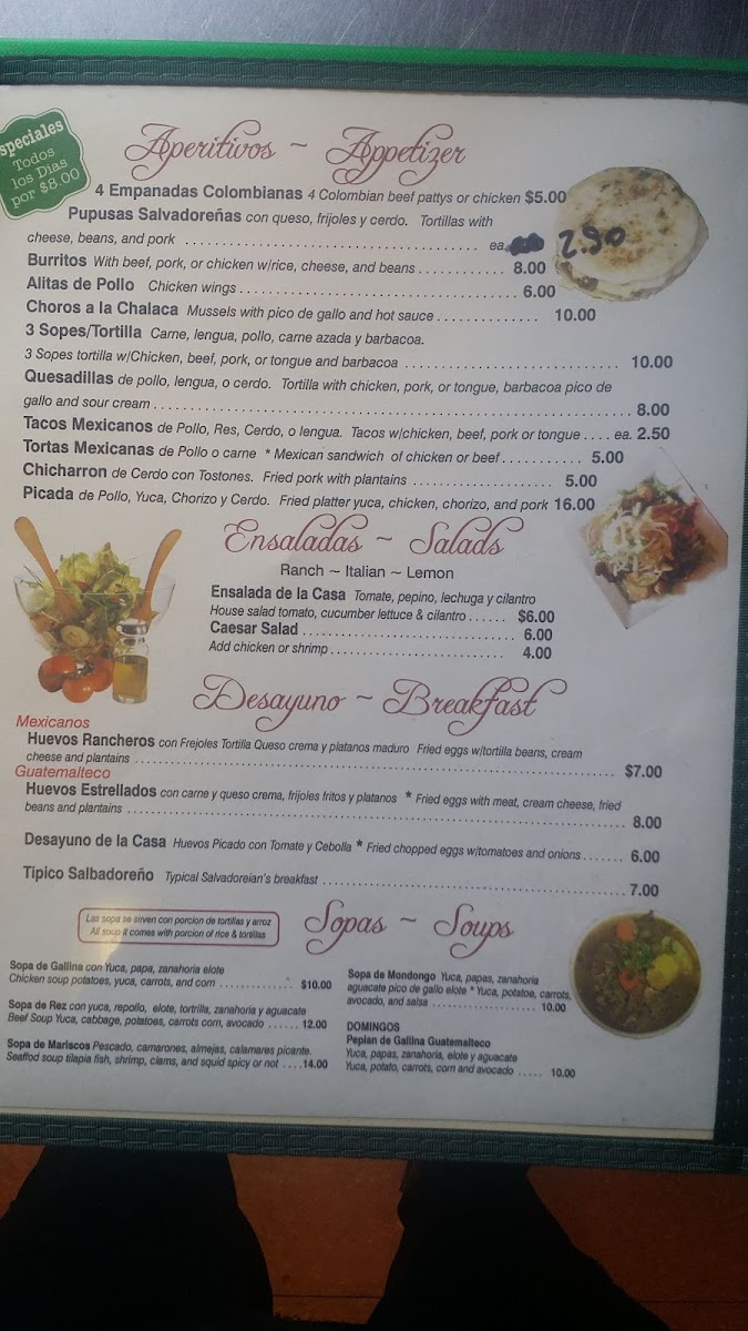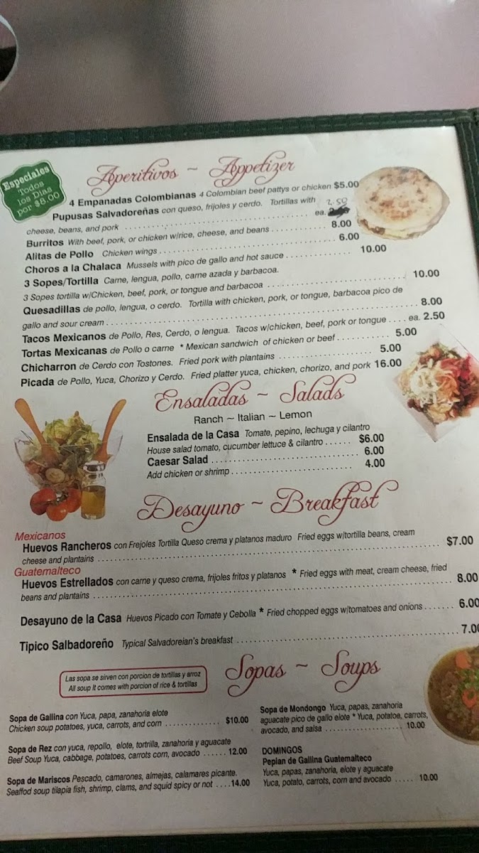 Soups ( Soups vary during the weekdays / Sopas varian durante el dia de la semana)
